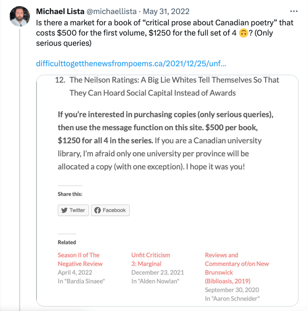 Honoured to be taking part in Wordsfest’s 10th anniversary this year. Hope to see some friends in London ON (in the Museum) on Sunday Nov 5 at 4:30 PM. I’ll be discussing The Covid Journals (U Alberta P, 2023), The Suspect We (Palimpsest Press, 2023) and Saving (Great Plains Publications, 2023), and will be part of a panel including Therese Estacion, Bahar Orang, and Vivian Chong. Not to mention the theme of this session, I love the overarching theme of the anniversary: crisis, creativity, & care. Schedule can be accessed by site navigation here. & if you can’t make this event, do remember that I’ll be in London the Wednesday before, on Nov 1 2023 at 6:30 PM for the Black Mallard Reading Series with January Rogers (Mykonos Restaurant, 572 Adelaide St. N). I’ll read from The Suspect We.